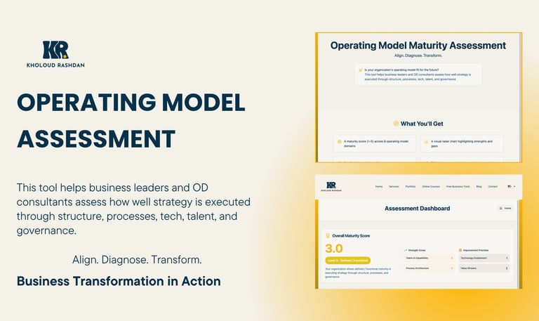 This tool helps business leaders and OD consultants assess how well strategy is executed through structure, processes, tech, talent, and governance.